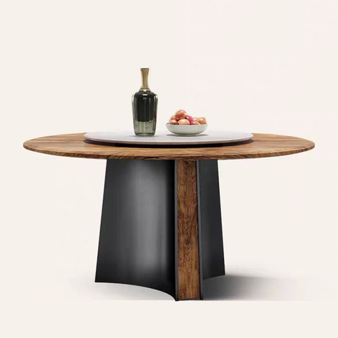 AOMISI CASA, современный ресторанный металлический обеденный стол, мебель для дома, цельная деревянная лента из орехового дерева, встроенная в вращающийся круглый стол