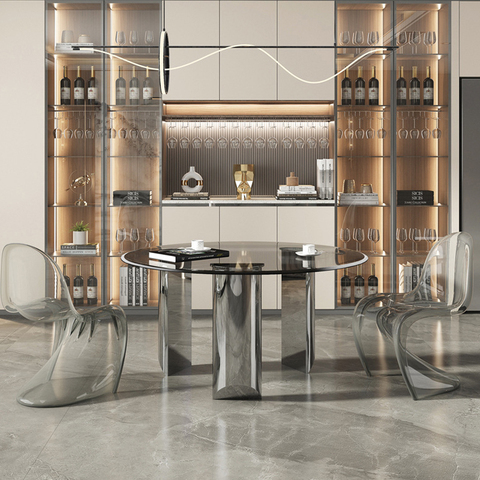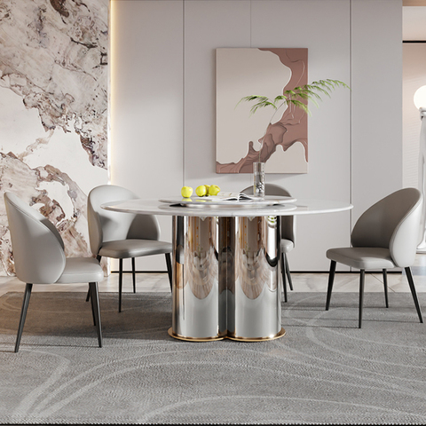 AOMISI CASA высококачественный обеденный стол, мебель, дизайнерский современный роскошный круглый обеденный стол из закаленного стекла, столешница из нержавеющей стали